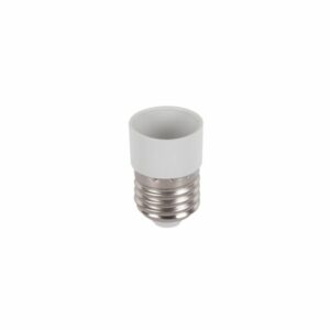 Denne adapter konverterer en E14-fatning til en E27-fatning. Så den pære, du skruer i den, skal have en E14-fatning, og den vil passe i et armatur med en E27-fatning.