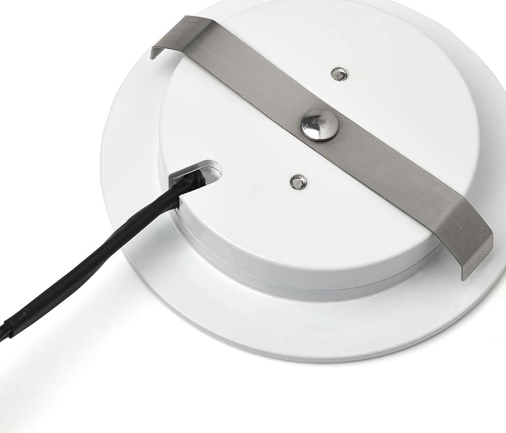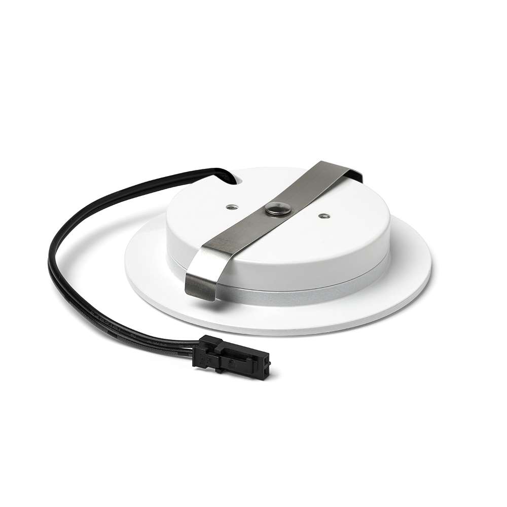Denne smukke LED-indbygningsspot har en ekstremt lav indbygningsdybde på kun 12 mm! Det gør det også muligt at bruge spotet i lofter med mindst mulig plads. Desuden kan Modena også bruges i hylder og skabe, uden at spotlyset stikker ud over hylden. Små klemmer er fastgjort til spotet, så når spotet skubbes ind i hullet, sætter klemmerne sig automatisk mod hullets side og holder spotet på plads. Disse indbyggede LED-spots er velegnede til brug i tørre og fugtige områder, da de er vandtætte IP44. Det gør dem også fremragende til brug i køkkenet over køkkenvasken. Hver indbygget LED-spotlampe leveres med sin egen driver. Fordi der bruges en driver, fungerer spottene direkte på 230V. Du kan tilslutte lige så mange spots, som du vil, og de kan parallelforbindes. Driverens mål er 28 x 20 x 18 mm (længde x bredde x højde).